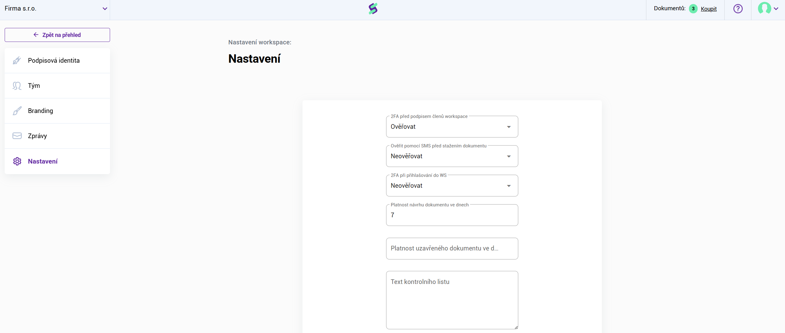 Pokud máte více workspace, můžete před podpisem vybrat, ve kterém workspace se má dokument podepsat.