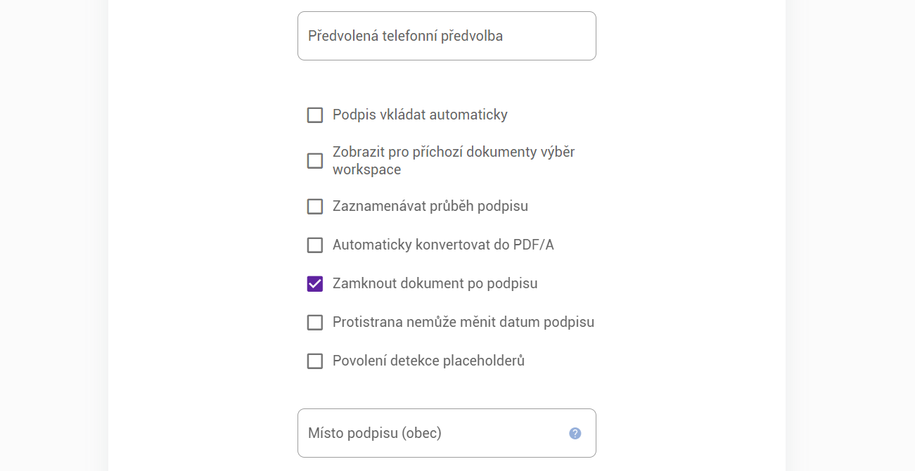 Lze přednastavit místo nebo město podpisu, pokud se opakovaně používá stejné.