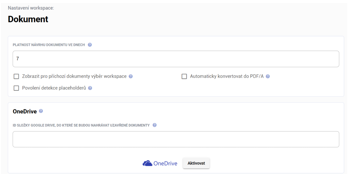 Pokud je modul Google Drive povolen, umožňuje odesílání finalizovaných dokumentů na Google Drive.