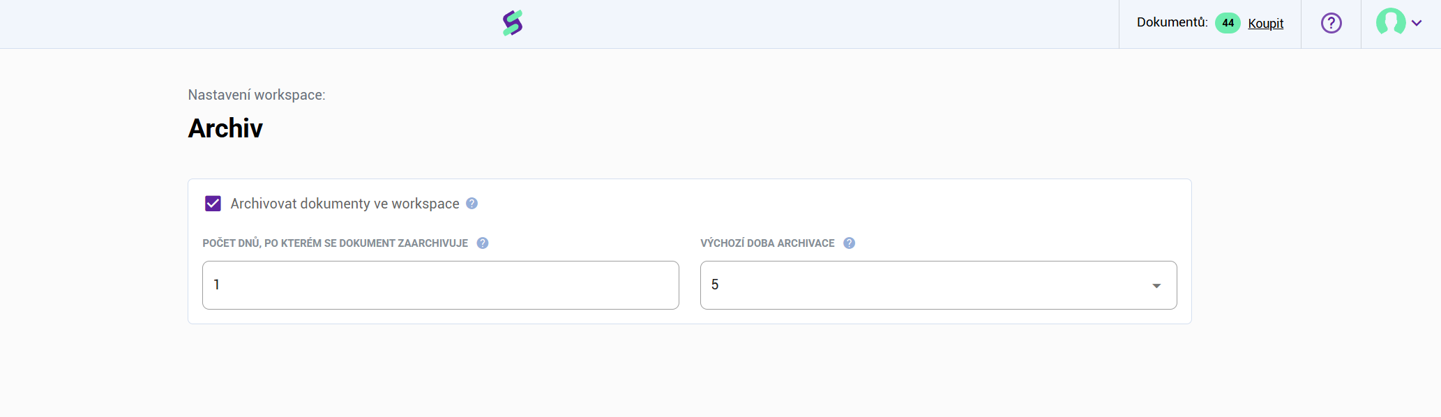 Pokud máte službu Signi archive aktivovanou, můžete nastavit dobu archivace dokumentů a určit, po kolika dnech budou dokumenty automaticky přesunuty do archivu.