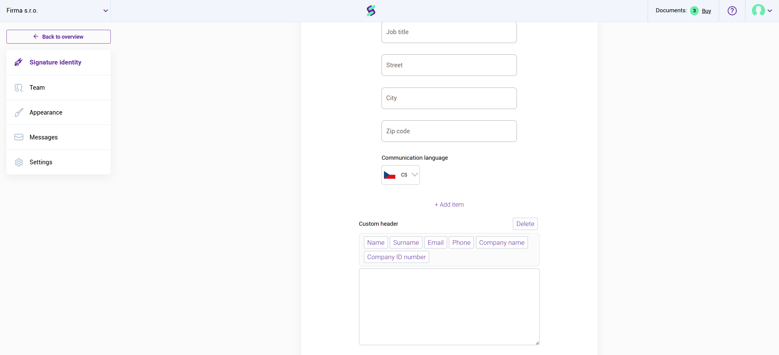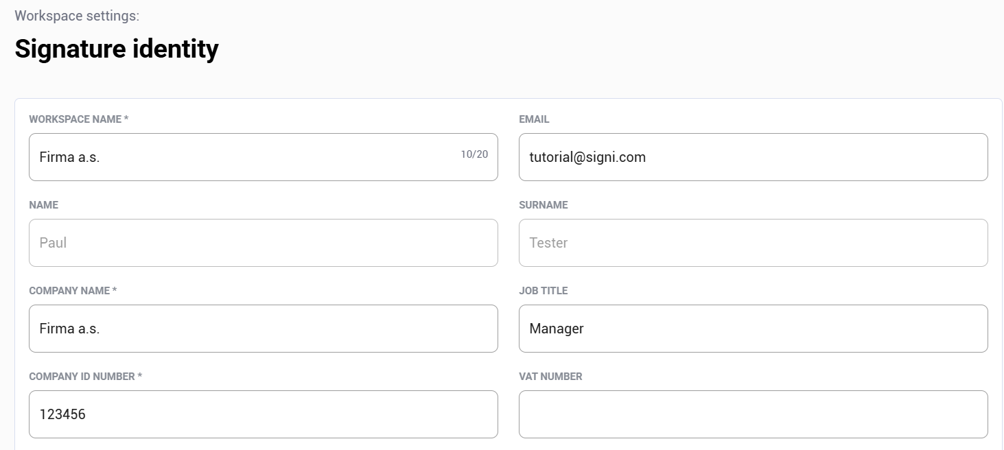 ℹ️ Note: If you are sending already created documents via SIGNI —where you only specify who and where to sign—you do not need to fill in the signature identity.
