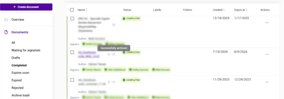 6 months after a document is created, the final signed PDF is automatically moved from Signi to the Signi Archive.