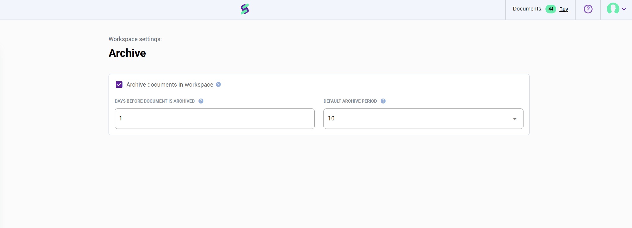 If the Signi Archive is enabled for your account, you can configure how long documents are stored and when they are automatically moved to the archive.